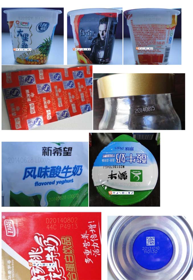 1、乳制品分為奶粉、液態奶、低溫酸奶、冰激凌冰棍等冷飲、奶酪等其它固態奶品等,其包裝主要有紙塑復合膜的利樂包、利樂枕、屋頂包、鉆石包、康美包、利樂罐等;鋁塑復合膜的奶粉袋、杯裝酸奶冰激凌等低溫奶的杯蓋膜、塑料復合膜的液奶百利包、酸奶杯套標膜、冰棍袋等;這些包裝材料的特點都是多層復合材料,2~7層,每層材質都有其應用價值,是不能破壞的,破壞了任何一層,包裝容器內的奶品品質和保質期都會受影響,所以其生產日期、批次號、溯源物流碼等標記方式一直處于兩難境地: