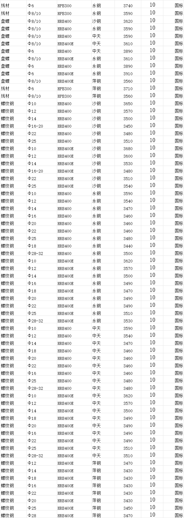 2025年10月6日(10.15)舟山錦海倉鋼材建筑材料價(jià)格